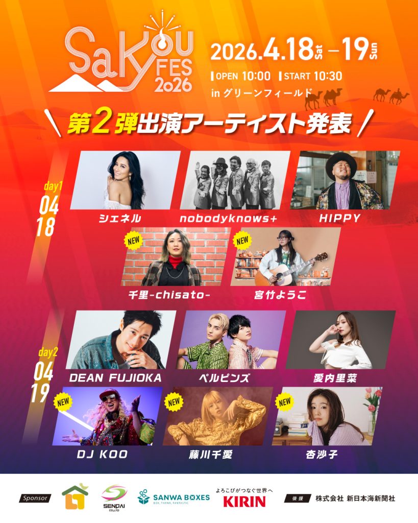 鳥取県下最大級!野外音楽フェス「SAKYOU FES.2026」出演決定