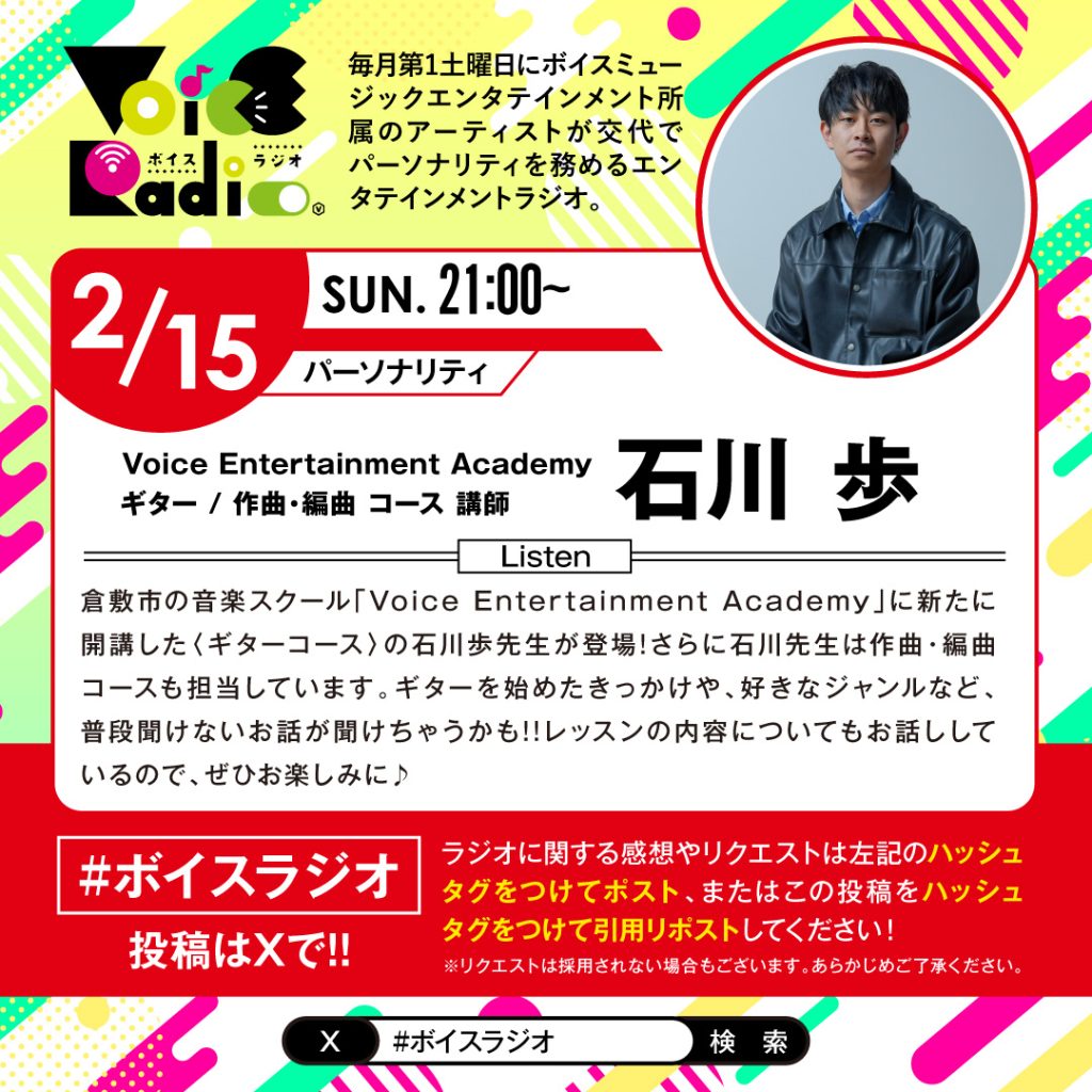 Voice Entertainment Academy ギター / 作曲・編曲 講師の石川歩